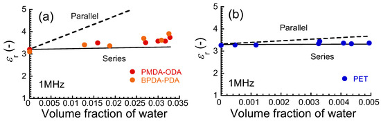 - Lee, C.; Shul, Y.; Han, H. Dielectric Properties of Oxydianiline-Based Polyimide Thin Films According to the Water Uptake. Polym. Phys. 2002, 40, 2190–2198. [Google Scholar] [CrossRef]