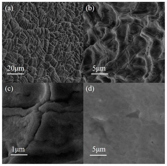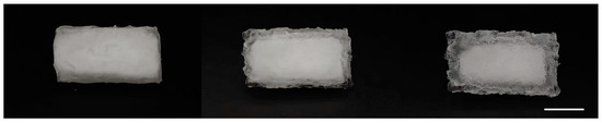 Figure 2a–c), likely a result of natural shrinkage and drying of the polymer network during its preparation. Conversely, the water-absorbed samples displayed a smoother surface in the SEM images (refer to