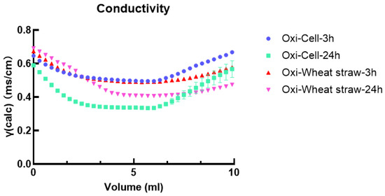 Conductivity analysis of oxidized microcellulose and oxidized wheat straw.