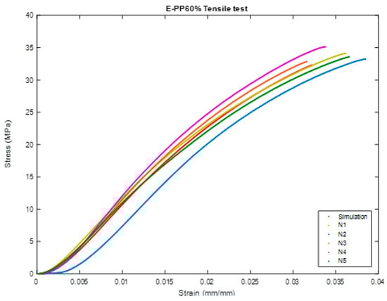 Comparison between Simulation and Closest Sample of BSCO Plaster 60% in Tensile.