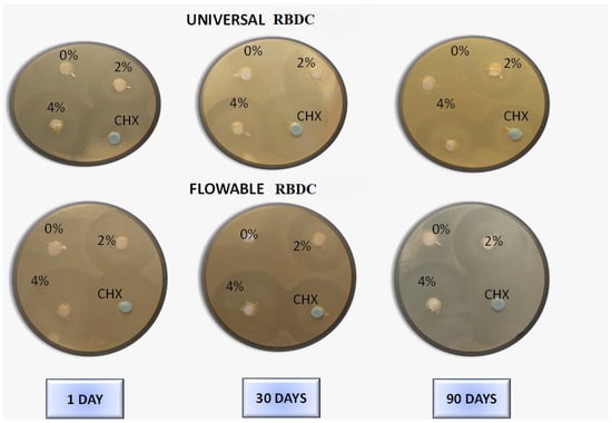 Graphical representation of agar diffusion test results for universal and flowable RBDCs.