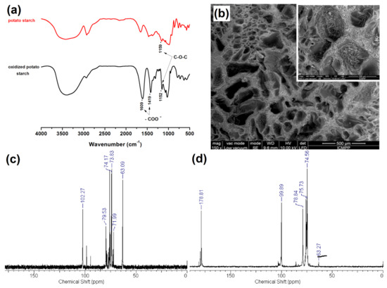 - Lukasiewicz, M.; Bednarz, S.; Ptaszek, A. Environmental friendly polysaccharide modification—Microwave-assisted oxidation of starch. Starch Stärke 2011, 63, 268–273. [Google Scholar] [CrossRef]