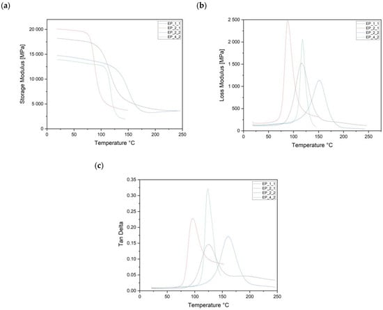 - The highest storage modulus values were obtained for the material using novolac-cured type A bisphenol resin. In contrast, the lowest storage modulus values were obtained for the material with brominated epoxy resin cured with dicyandiamide.