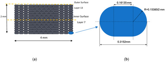 Compliance with established testing standards was essential to maintain methodological consistency and standardization, which, in turn, facilitated precise comparisons of tensile properties between the intact and flawed specimens. Particularly, it was observed that the actual 3D-printed elliptical flaw exhibited dimensions somewhat smaller than those anticipated initially as shown in Figure 3. This discrepancy arose from the limitations of the 3D printer and the certain properties of the extrusion nozzle employed, including factors such as layer height, nozzle size, and extrusion width. It is important to note that FDM parts may undergo some degree of shrinkage during the cooling process, potentially contributing to the observed reduction in flaw size compared to the initial design.