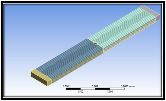The 3D-printed samples were produced utilizing the Ultimaker S5 3D printer to explore the influence of raster angles on the mechanical properties of defective 3D-printed parts, with a primary focus on a through-thickness defect. These specimens were produced using standard PLA filament material; details regarding the material properties of the filament employed in this study can be found in Table 1.