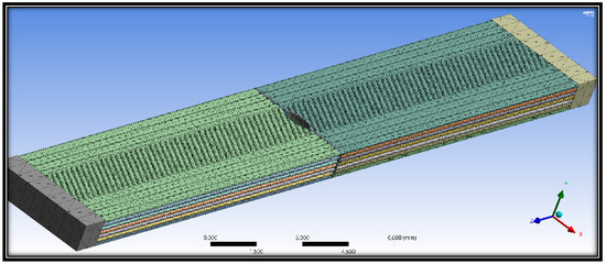 The applied load of 1 KN was used in FEA simulation and fixed on the other side. Table 3 lists the mesh statistics of material samples at different raster angles for intact and defective cases. It can be observed from the mesh statistics that the number of elements decreases with the increase in raster angles. The highest number of elements and nodes were observed for raster angle 0°, and the lowest number of elements and nodes were examined for raster angle 90°.