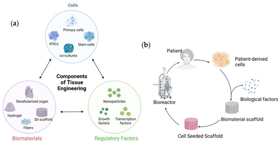 Schematic showing tissue engineering: (a) three important components of tissue engineering and (b) the tissue engineering process.