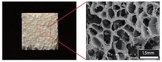 Scanning electron microscope image of hydroxyapatite–collagen composite. Reprinted with permission from [88]. Copyright © 2024 The Japanese Society for Spine Surgery and Related Research.