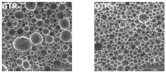Images of polyurethane (PU)/ground tire rubber (GTR) composite foams’ cellular structure obtained with scanning electron microscopy.