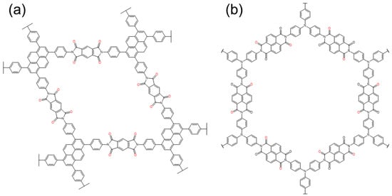 - Jhulki, S.; Feriante, C.H.; Mysyk, R.; Evans, A.M.; Magasinski, A.; Raman, A.S.; Turcheniuk, K.; Barlow, S.; Dichtel, W.R.; Yushin, G.; et al. A Naphthalene Diimide Covalent Organic Framework: Comparison of Cathode Performance in Lithium-Ion Batteries with Amorphous Cross-linked and Linear Analogues, and Its Use in Aqueous Lithium-Ion Batteries. Acs Appl. Energ. Mater. 2021, 4, 350–356. [Google Scholar] [CrossRef]