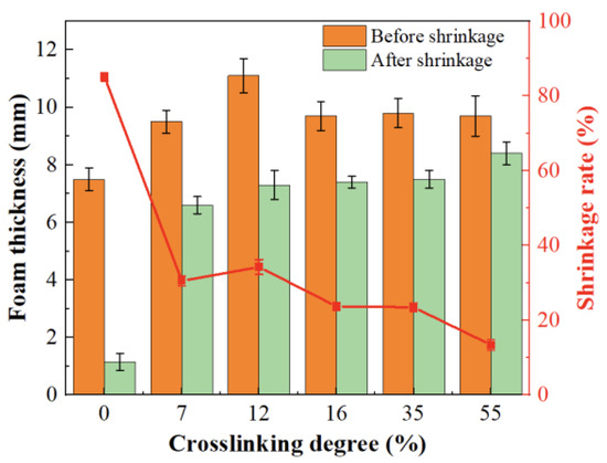The thermal shrinkage rate of PP/POE foams as a function of crosslinking degree.
