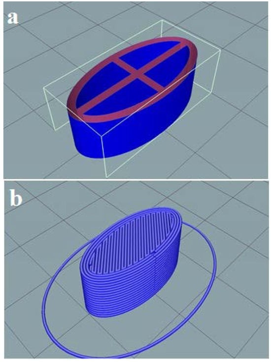 The shell design for ketamine HCl tablet using Solidwork (a) showing the perspective view of pits; (b) the perspective view of the sliced tablet design uploaded by Repetier software (v. 2022).
