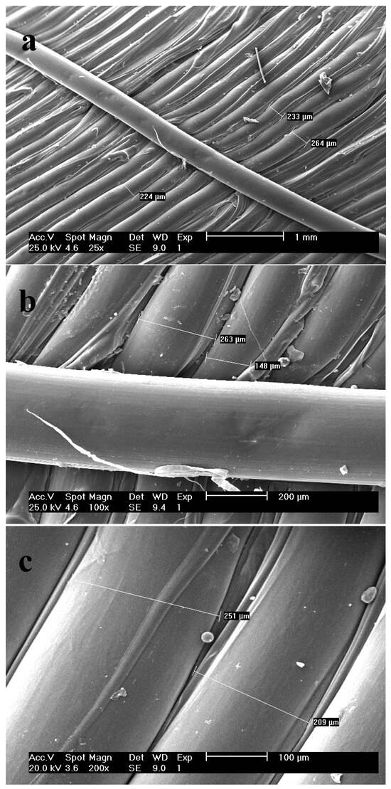 The surface morphology of the printed tablet was analyzed by SEM technique at different scales (Figure 3). The results plainly showed smooth surfaces of the multiple deposited layers, which are laid perfectly beside each other. The merging of the layers is insignificant, and instances of merging or overlapping layers are due to disproportionate evaporation of polymer solvent. Considering the diameter of the HME nozzle equal to 200 µm, the micrographs show the mean diameter of 215 µm for parallel printed layers which is satisfactory.
