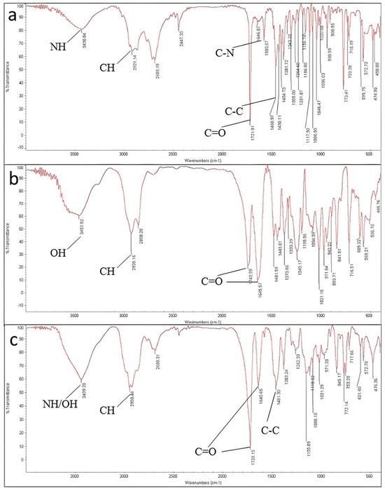 FTIR spectrums of (a) ketamine HCl; (b) Soluplus® and (c) 3D-printed tablet in the range between 400 cm−1 and 4000 cm−1 using standard KBr method.