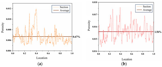 The porosity of N15 at different locations. (a) The porosity of N15 at 20 °C and (b) the porosity of N15 at 70 °C.