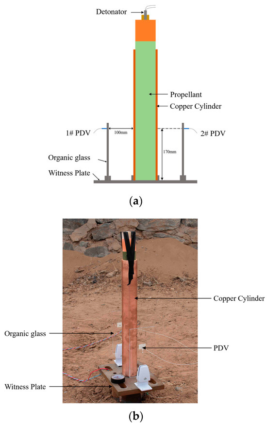 The schematic diagram of the cylinder test. (a) Schematic diagram and (b) configuration diagram.