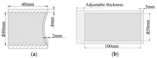 The partition materials that are usually used are aluminum and organic glass. Owing to its poor thermal stability, organic glass softens at 40–50 °C. Therefore, aluminum was chosen as the material for the uniform heating of the propellant. However, as aluminum has a high thermal conductivity of 237 W·m−1·K−1, heat dissipation is likely to happen at the top of the propellant during the heating process. Polytetrafluoroethylene (PTFE) was added as thermal insulation between the aluminum partition and the propellant to reduce the heat dissipation and temperature rise at the top of the heating device. The PTFE has a low thermal conductivity of 0.25 W·m−1·K−1. At the same time, a 5 mm thick insulation pad was placed at the bottom of the propellant, to prevent heat loss from the bottom of the test setup as well. The validity of the heating test setup was verified using numerical simulations.