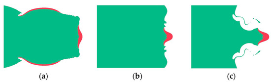 The formation process of EFP. (a) t = μs, (b) t = 40 μs, and (c) t = 83 μs.