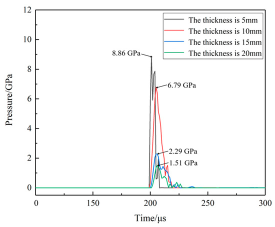 The pressure curves at location A for different shell thicknesses.
