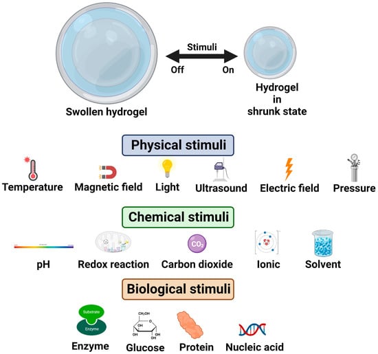 Illustration of stimuli-responsive hydrogels.