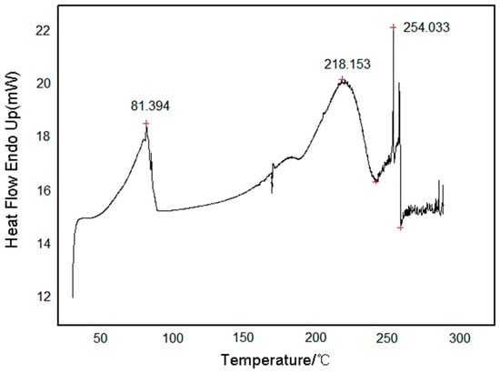 Differential scanning calorimetry (DSC) (Perkin Elmer Pyris 1 thermal analyzer; Perkin Elmer Enterprise Management (Shanghai) Co., Ltd., Shanghai, China). Environment: N2; heating rate: 10 °C/min; reference material: Al2O3; testing temperature range: room temperature-350 °C.