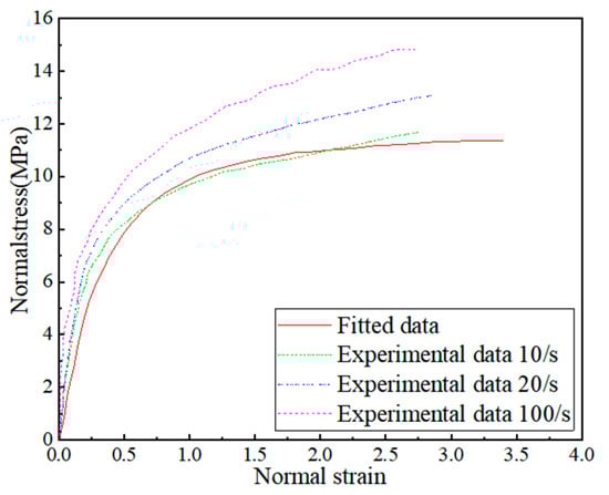 Results of high strain rate on polyurea and fitted data at 10 s−1.