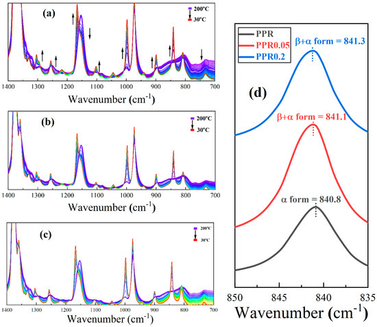 - Zhu, X.; Yan, D.; Yao, H.; Zhu, P. In situ FTIR spectroscopic study of the regularity bands and partial-order melts of isotactic poly(propylene). Macromol. Rapid Commun. 2000, 21, 354–357. [Google Scholar] [CrossRef]