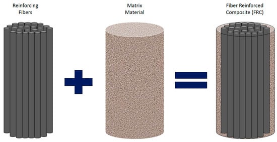 A fiber-reinforced composite (FRC), as shown in Figure 3, is a building material composed of three components: reinforcing fibers (either continuous or discontinuous), a continuous phase matrix, and a fine interphase region, also known as the interface (where the different materials in the composite meet).