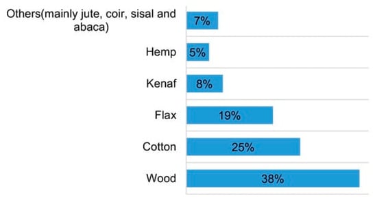 Different countries around the world cultivate and utilize a variety of natural fibers, often engaging in import and export activities with other regions. For instance, European automotive industries predominantly utilize flax and hemp in their products. Additionally, they import other fibers like kenaf and jute from different countries. Figure 4 illustrates the fibers utilized by European automotive industries in 2012 [104].