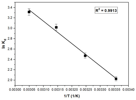 To establish whether the adsorption process of Ga(III) on the surface of the XAD7-Va material proceeds spontaneously, the value of Gibbs free energy can be calculated using the Gibbs–Helmholtz equation [27]: