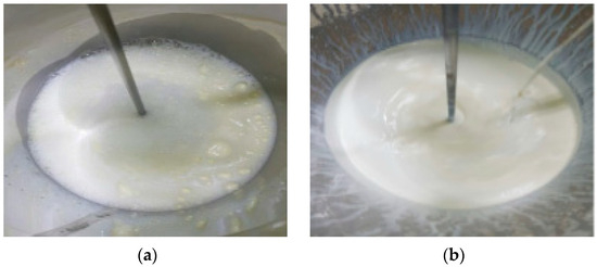 Photograph of ceria slurry before (a) and after the addition of the G-336 defoaming polymer (b).