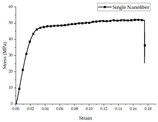 4.3. Predicted Stress–Strain Curve of Single Nanofibers
