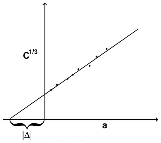 The value of Δ can be found by generating a plot of cubic root of compliance C, which is considered δ/P, as a function of length of a crack a. Thus, Δ can be found as a negative line segment, cut off by extrapolating to horizontal axis plot and vertical axis. A scheme showing how to obtain a Δ value is provided in Figure 3.
