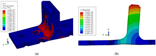 Damage distribution at point B (a). Deformation of T-joint at point B (b).