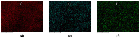 EDS mapping images of (a–c) EP/DDM and (d–f) EP/DDM/VDPD-0.6 (elements: C, O, and P).