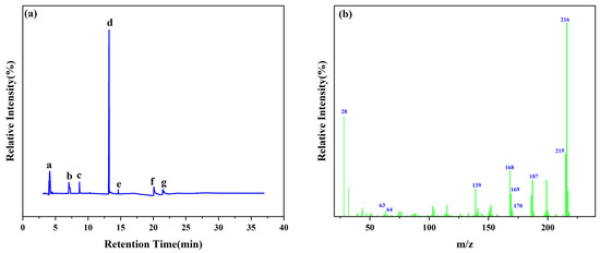 Total ion chromatogram (a) and typical MS spectrum of VDPD (b).