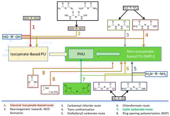 - Cornille, A.; Auvergne, R.; Figovsky, O.; Boutevin, B.; Caillol, S. A perspective approach to sustainable routes for non-isocyanate polyurethanes. Eur. Polym. J. 2017, 87, 535–552. [Google Scholar] [CrossRef]