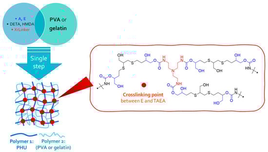 3.4. One-Step Procedure for the Manufacture of PHU-Based Multicomponent Hydrogels