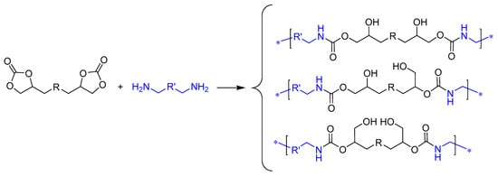 - Cornille, A.; Blain, M.; Auvergne, R.; Andrioletti, B.; Boutevin, B.; Caillol, S. A study of cyclic carbonate aminolysis at room temperature: Effect of cyclic carbonate structures and solvents on polyhydroxyurethane synthesis. Polym. Chem. 2017, 8, 592–604. [Google Scholar] [CrossRef]