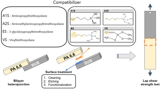 Chicago/Turabian StyleLee, Hayeong, Seung-In Song, and Keon-Soo Jang. 2024. "The Role of Surface Treatment and Coupling Agents for Adhesion between Stainless Steel (SUS) and Polyamide (PA) of Heterojunction Bilayer Composites" Polymers 16, no. 7: 896. https://doi.org/10.3390/polym16070896