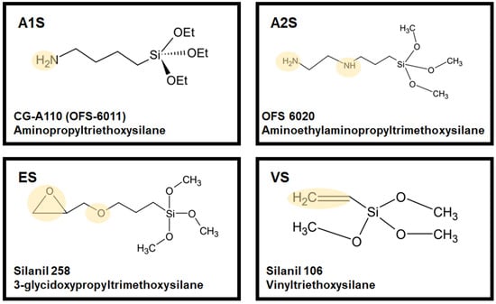 - Plueddemann, E.P. Nature of Adhesion Through Silane Coupling Agents. In Silane Coupling Agents; Plueddemann, E.P., Ed.; Springer: Boston, MA, USA, 1991; pp. 115–152. ISBN 978-1-4899-2070-6. [Google Scholar]