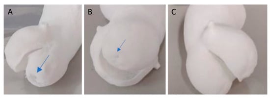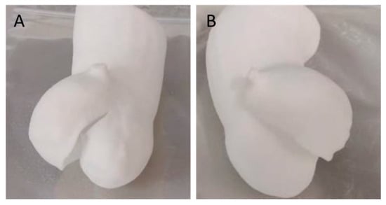 - Shearn, A.I.; Ordoñez, M.V.; Rapetto, F.; Caputo, M.; Biglino, G. Rapid Prototyping Flexible Aortic Models Aids Sizing of Valve Leaflets and Planning the Ozaki Repair. JACC Case Rep. 2020, 2, 1137–1140. [Google Scholar] [CrossRef]