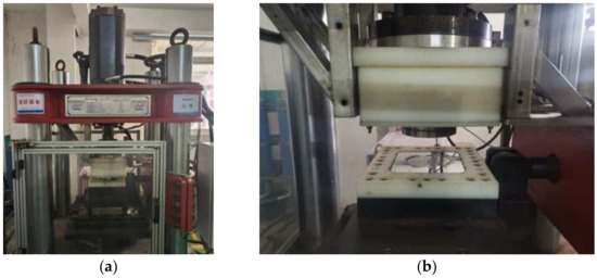 As shown in Figure 3, the multifunctional apparatus used in this experiment had a vertical maximum load capacity of 75,000 kN, a vertical stroke of 120 mm, a horizontal maximum load capacity of 6000 kN, a horizontal stroke of 600 mm, and a horizontal maximum loading velocity of 1000 mm/s.