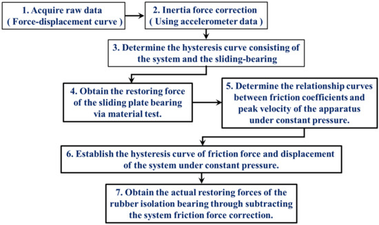 After determining and establishing the inertial force exerted by the moving components within the loading system, it was possible to analyze the restoring force of the spherical sliding bearing to estimate the internal frictional force present within the loading apparatus. The prescribed procedure consists of the following sequential steps.