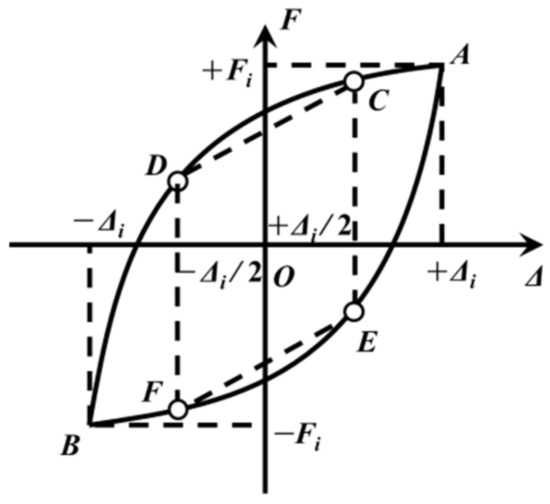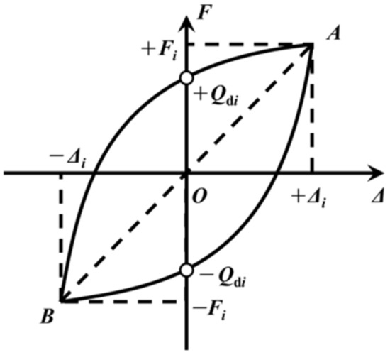 where Fi and −Fi are the restoring forces corresponding to the maximum and minimum displacements, respectively, in the i-th hysteresis loop of Figure 12.