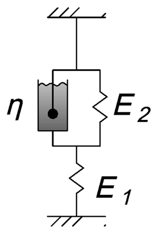 where E1, E2—elastic parameters of the material, η—viscosity parameter, H = E1E2/(E1 + E2)—long-term modulus, and m = η/(E1 + E2).