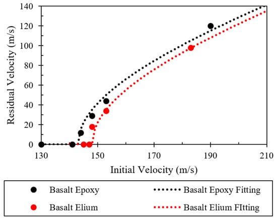 Ballistic limit velocity of the composites.