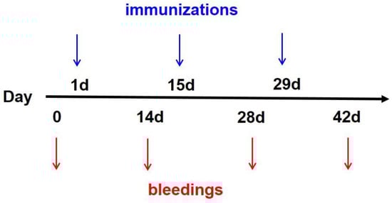 Mice immunization and bleeding schedule. Blue arrows indicate the time for immunizations. Red arrows indicate the time for bleedings.