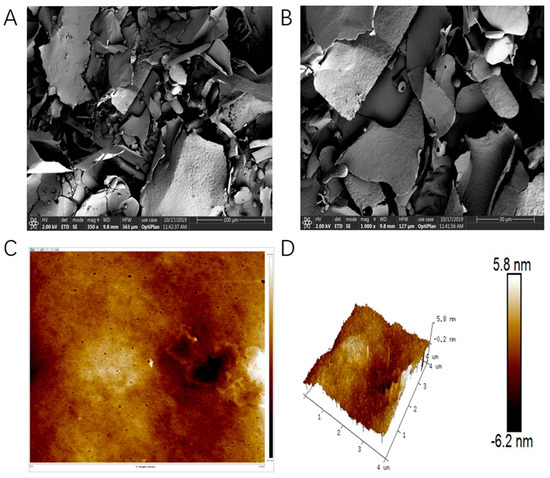 2.7. Scanning Electron Microscopy (SEM) and Atomic Force Microscopy (AFM) Analysis