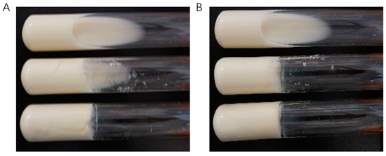 - Surber, G.; Spiegel, T.; Bich Phuong, D.; Pombo, A.W.; Rohm, H.; Jaros, D. Cream cheese made with exopolysaccharide-producing Lactococcus lactis: Impact of strain and curd homogenization pressure on texture and syneresis. J. Food Eng. 2021, 308, 110664. [Google Scholar] [CrossRef]